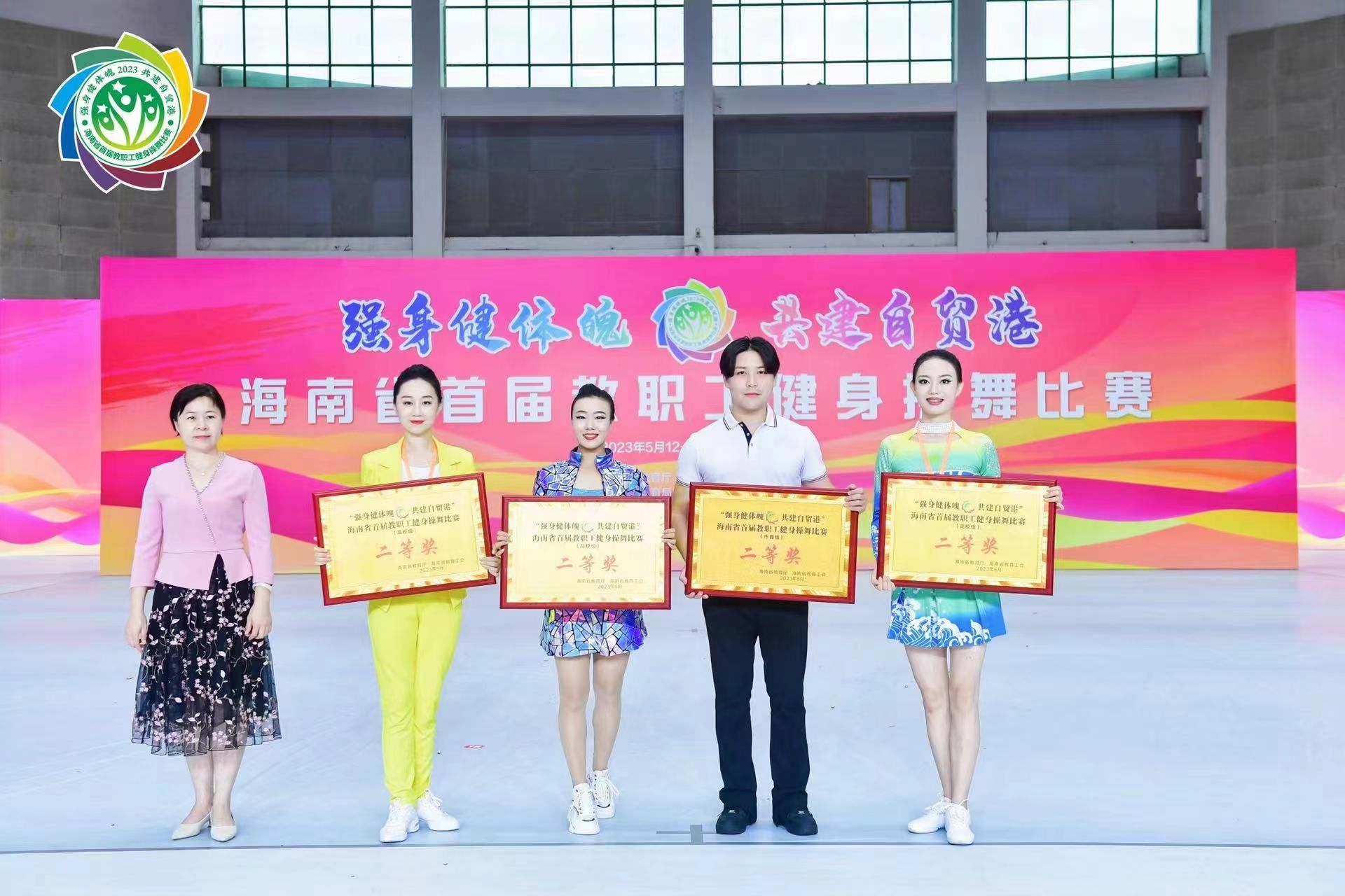 5月12日,由海南省教育厅、海南省教育工会主办的首届全省教职工健身操舞比赛在琼海市嘉积中学隆重举行,我校代表队以89分的成绩位列高校组第四名,荣获二等奖。