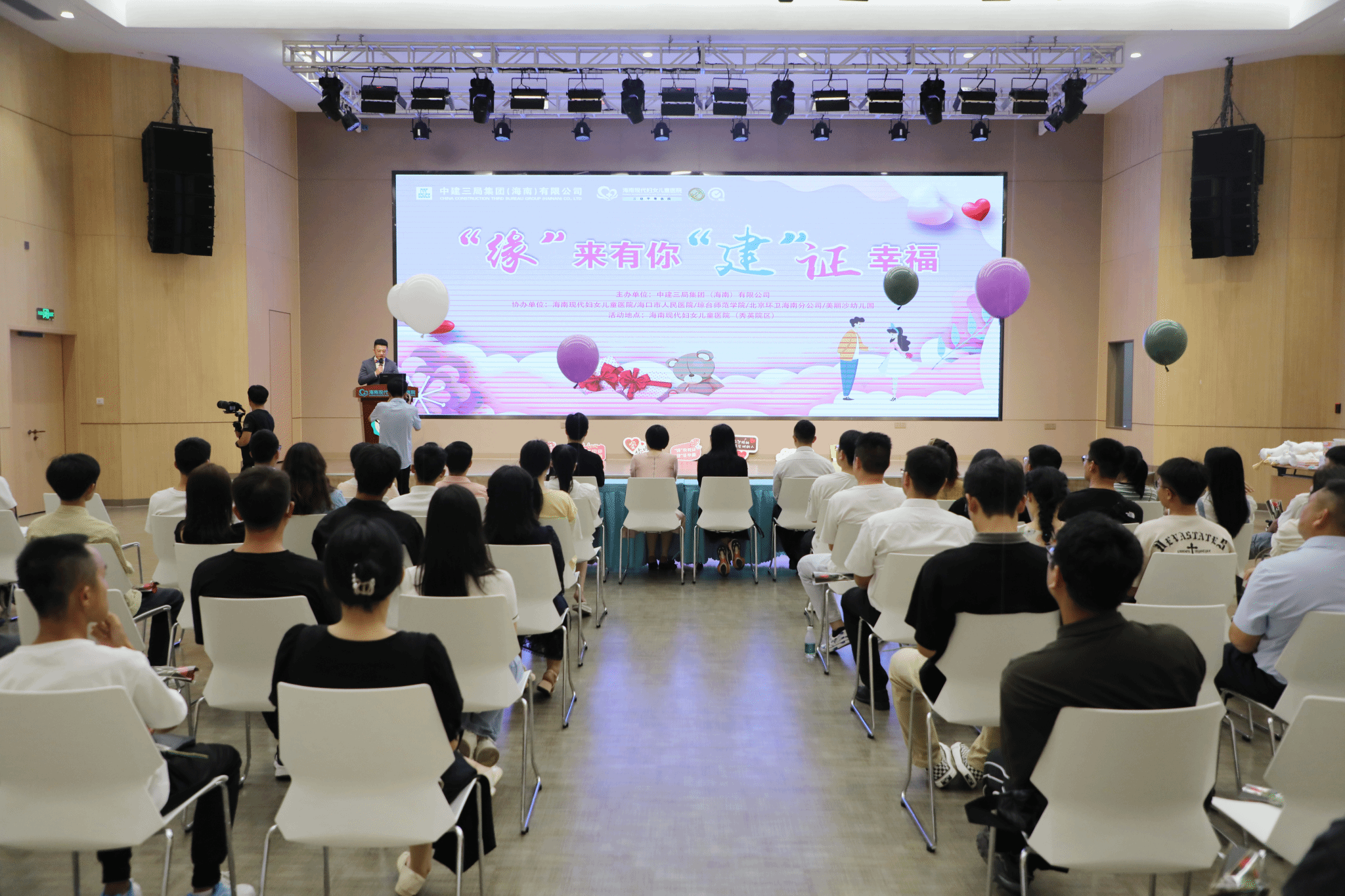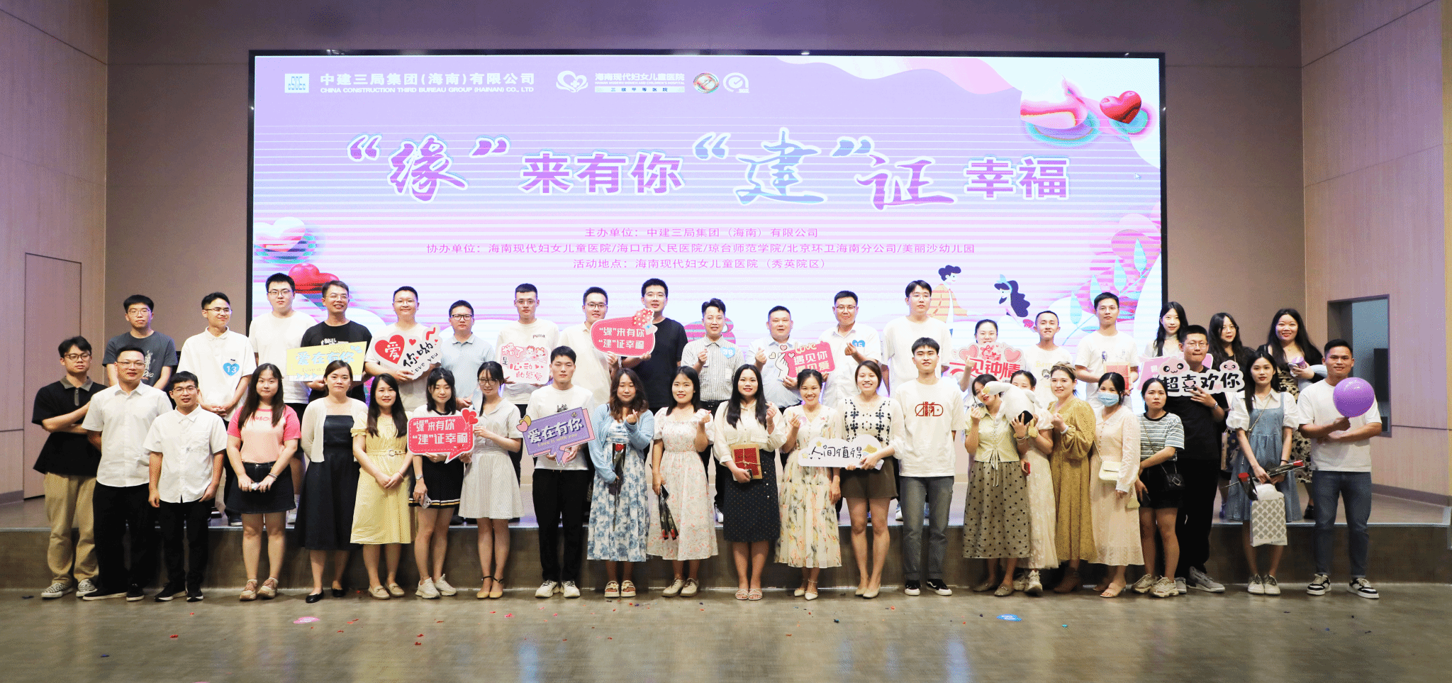 2023年5月28日14:00-17:00,在海南现代妇女儿童医院五楼国际会议厅举行了由中建三局海南有限公司联合海南现代妇女儿童医院、海口市人民医院、琼台师范学院、美丽沙幼儿园等多家单位共同举行的——“缘”来有你,“建”证幸福青年联谊交友活动。